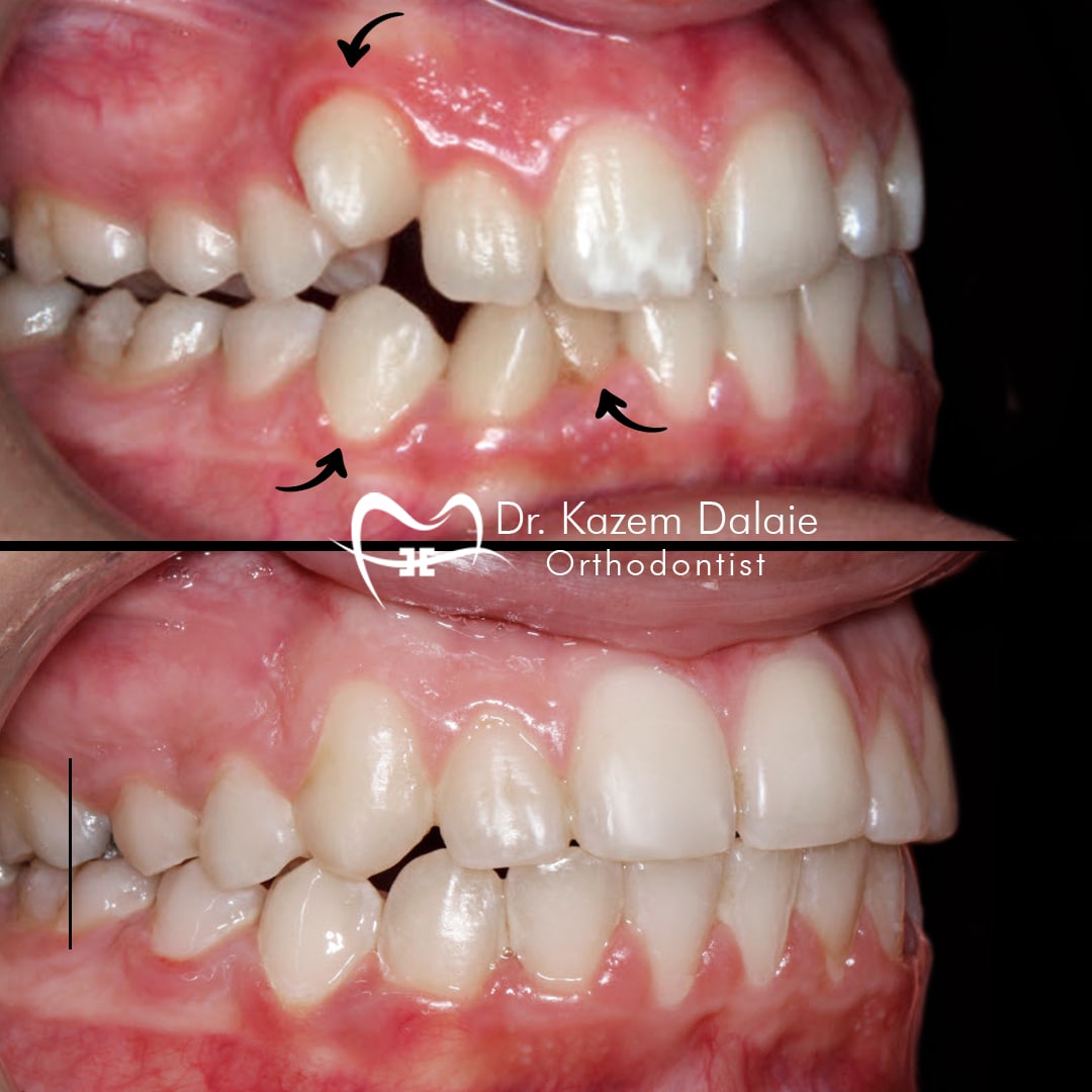 فضای تاریک زیاد و موقعیت عقب لبها، امکان درمان بدون کشیدن را بیشتر فراهم میکند.